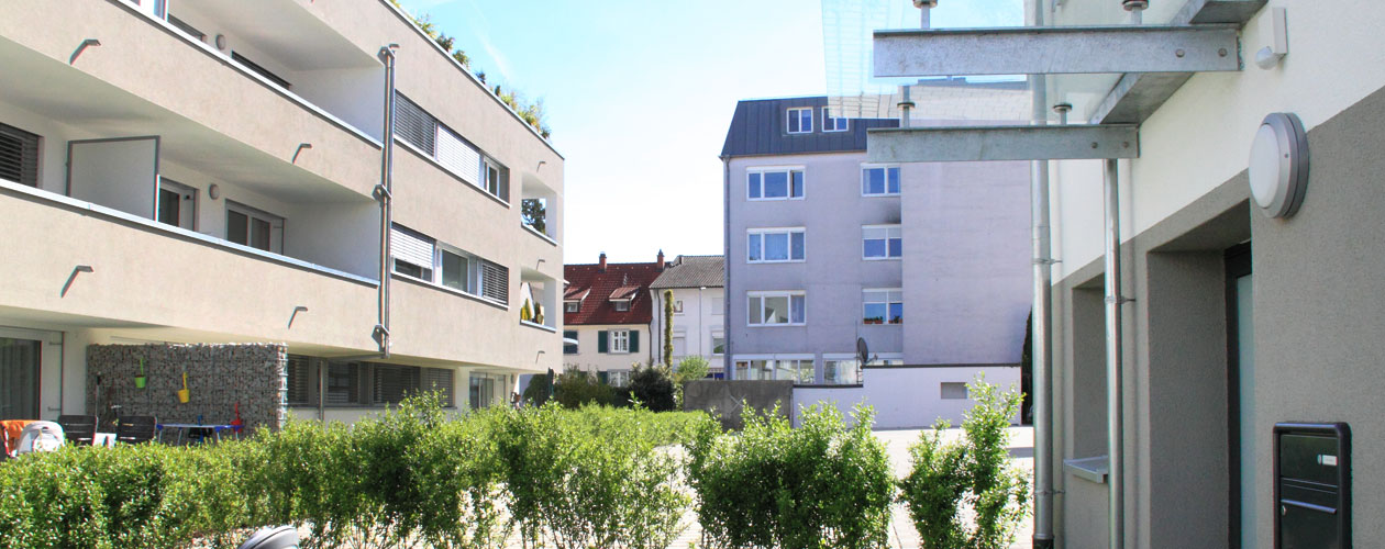 Im Rahmen der Ortskernsanierung im Gebiet Grenzach-Zielmatten entstand im Jahre 2012 bis 2013 zwischen Schulstraße, Scheffelstraße und Jackob-Burckhardt-Straße die Neue Mitte Grenzach. Dank der Neustrukturierung des Quartiers und der Sanierung der umliegenden Bebauung konnten wir als Projektentwickler eine hochwertige Wohnlage mit guter Infrastruktur realisieren. Im Passivhausstandard mit zeitloser Architektur wurden achtundzwanzig Eigentumswohnungen in einer Größe von 55 bis 137 Quadratmeter gebaut. Jede dieser Wohnungen ist hell, modern geschnitten und mit Parkettboden ausgestattet. Ein Tiefgaragenstellplatz sowie ein Kellerabteil gehören zu jeder Wohnung.